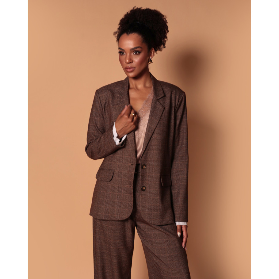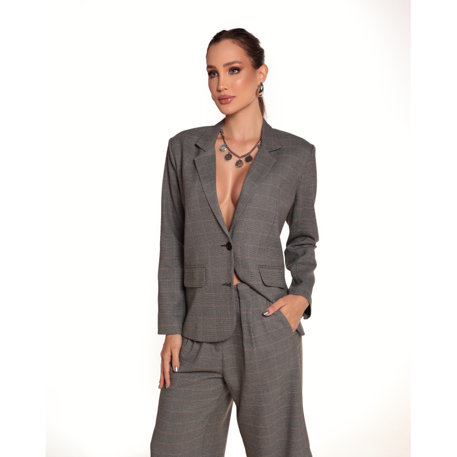 Blazer alfaiataria, xadrez padronagem clássica, forro em cetim , bolsos decorativos com lapelas, botões frontais. Vem com sub punho em tricoline dando a possibilidade de ser usado em duas versões.